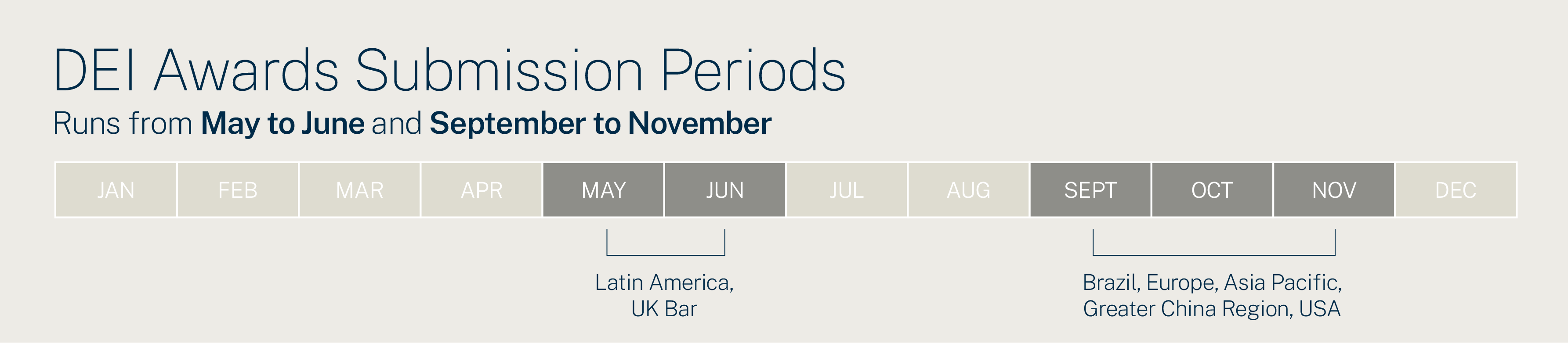 While North America and Latin America have remained flagship events, we also have awards for the UK Bar, Europe, Asia Pacific and Greater China Region, and Brazil. The categories we recognise have expanded as well, to include pro bono and sustainability awards. We also updated the programme’s name in 2023 to align further with the market, rebranding as Chambers Diversity, Equity and Inclusion (DEI).