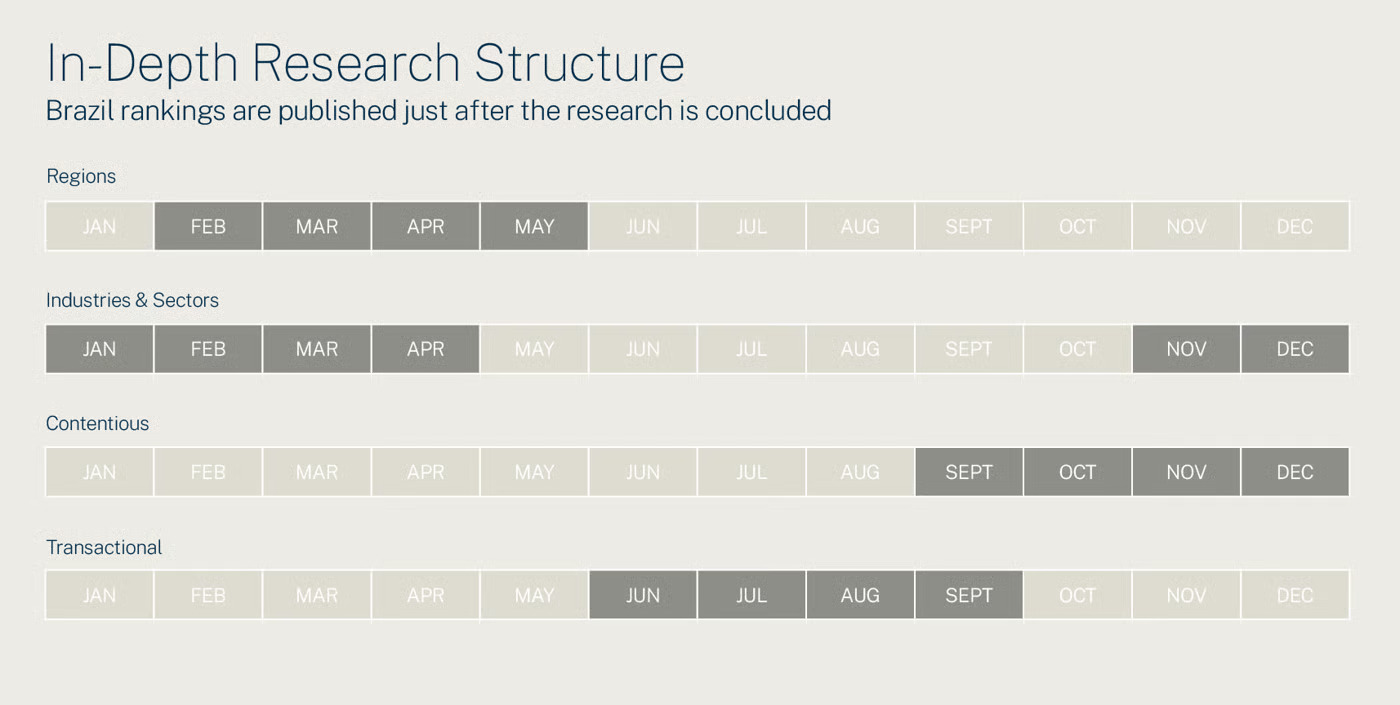 The Chambers Brazil research runs all year round, to provide those looking for providers of legal services the most up-to-date and in-depth information they need to find the most suitable firm for their needs, when it really matters.