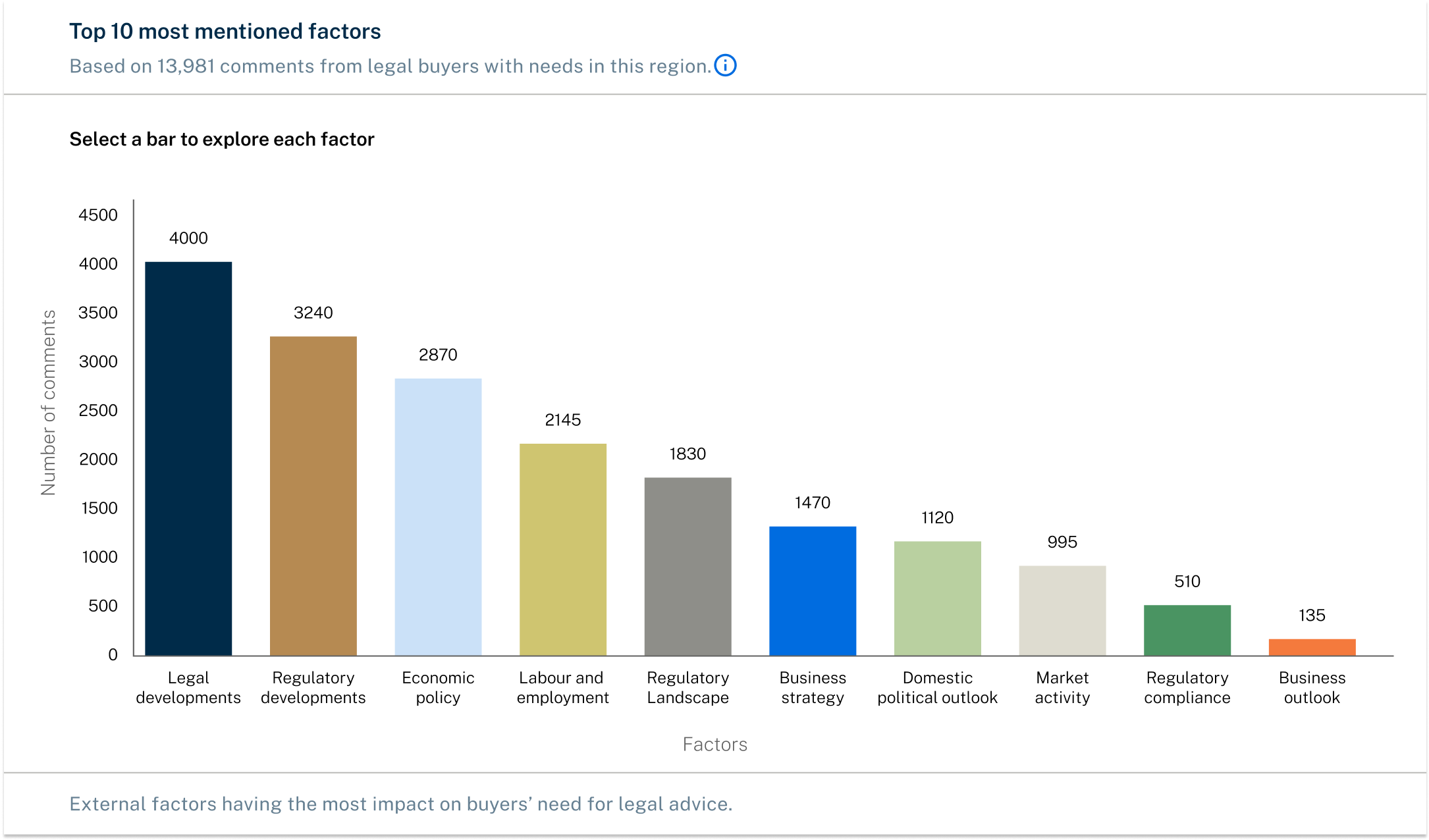 Identifies a range of key factors for legal buyers in one of their chosen growth regions.